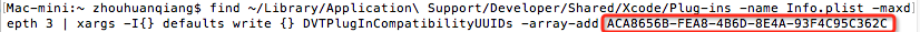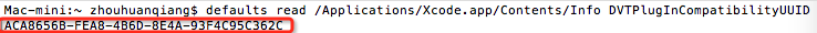如圖,終端會輸出獲取到的DVTPlugInCompatibilityUUID