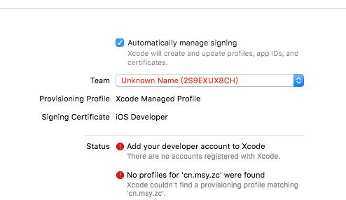 解決辦法是:大家在Xcode的偏好設置中,添加蘋果賬號,即可。