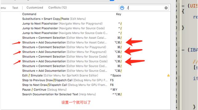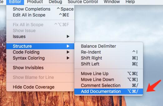 注意:Xcode8內置了開啟注釋的功能,位置在這裡