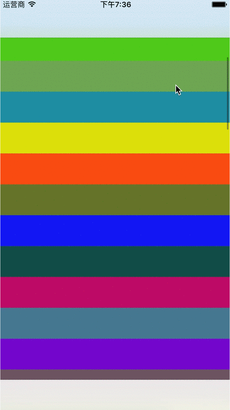 // 指示器樣式,默認為UIScrollViewIndicatorStyleDefault(黑內容白邊框,適用於任何背景),其余可選項為UIScrollViewIndicatorStyleBlack(全黑)和UIScrollViewIndicatorStyleWhite(全白) @property(nonatomic) UIScrollViewIndicatorStyle indicatorStyle; // 為指示器周圍增加可滾動區域,默認為UIEdgeInsetsZero @property(nonatomic) UIEdgeInsets scrollIndicatorInsets; // 是否在滑動時指示器可見,默認為YES @property(nonatomic) BOOL showsHorizontalScrollIndicator; @property(nonatomic) BOOL showsVerticalScrollIndicator; // 閃一下指示器(注: 建議在scrollView展示給用戶時調用一下,以提醒用戶該處可滑動) - (void)flashScrollIndicators;