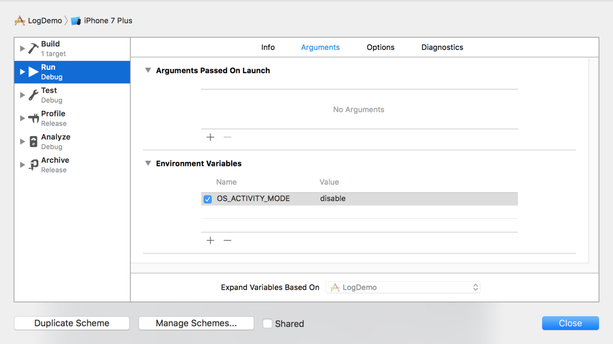 Edit Scheme-> Run -> Arguments, 在Environment Variables裡邊添加 OS_ACTIVITY_MODE = disable
