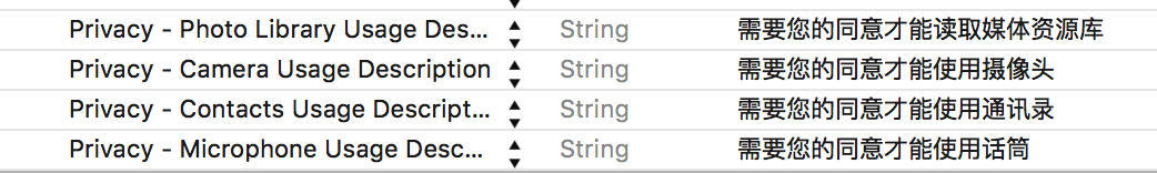 原因:由於iOS10對Security and Privacy Enhancements 安全和保密性增強,在申請很多私有權限時,都需要添加描述,不添加會crash。但使用之前的Xcode編譯的話,仍然會采用系統的權限通知框。
