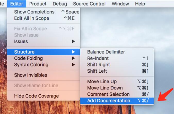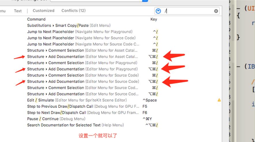 注意:Xcode8內置了開啟注釋的功能,位置在這裡