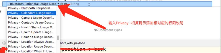 我們需要打開info.plist文件添加相應權限的說明,否則程序在iOS10上會出現崩潰。