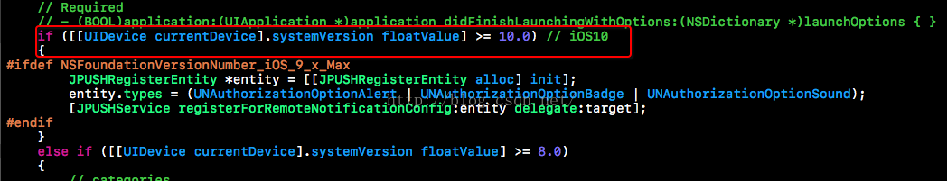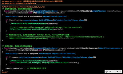 #import "JPUSHService.h" #import <AdSupport/AdSupport.h> #ifdef NSFoundationVersionNumber_iOS_9_x_Max // 這裡是iOS10需要用到的框架 #import <UserNotifications/UserNotifications.h> #endif