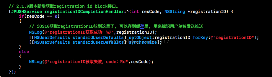 NSLog(@"registrationID獲取失敗,code:%d",resCode);