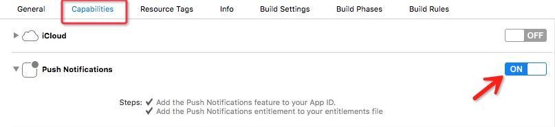 Xcdoe 8中大家需要在Targets->Capabilities 中打開推送開關