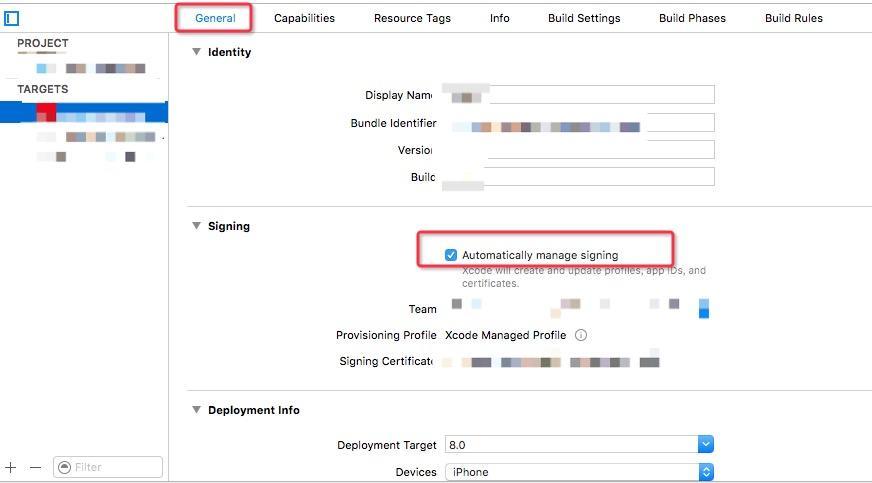 Xcode 8中蘋果可以幫助我們自動管理證書。如下圖勾選了就可以。
