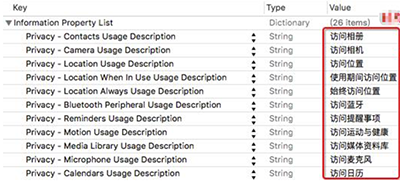 iOS 10 開始對隱私權限更加嚴格,如果你不設置就會直接崩潰,現在很多遇到崩潰問題了,一般解決辦法都是在info.plist文件添加對應的Key-Value就可以了。