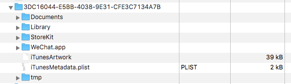 上方截圖就是上述命令運行後所輸出的內容,從上述內容中我們輕而易舉的就可以找到“WeChat”所在目錄。我們可以通過iExplore打開該目錄,更直觀的來看一下微信App所在的目錄,具體內容如下所示. 上面這個進程的絕對路徑我們要記下來,因為後邊砸殼的時候會使用到該路徑。