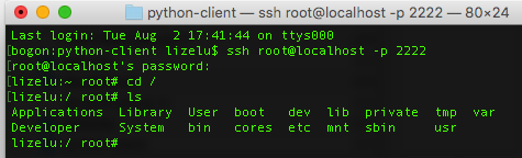 上述命令就是ssh連接的命令 -p後邊緊跟的是上述轉發的端口,執行上述命令後,結果如下: