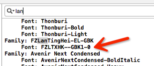 因為使用字體時, 要使用字體的真實名稱, 而不是文件名, 可以用以下代碼來遍歷當前設備可用的字體名稱,