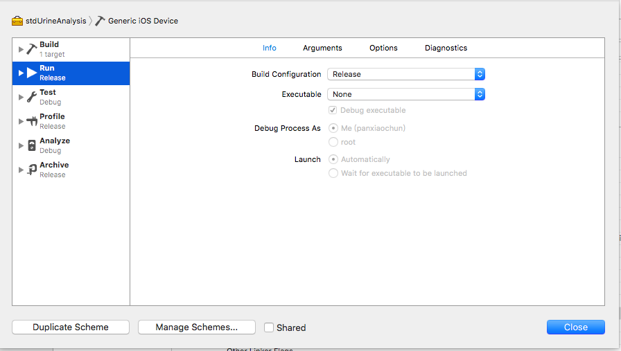 4.找到Edit scheme在run——>info下把build configure的值由默認值Debug 改為Release