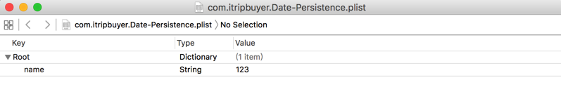 根據路徑進入沙盒發現,在沙盒的Library/Preferences/目錄下發現多出了一個com.itripbuyer.Date-Persistence.plist的plist文件。