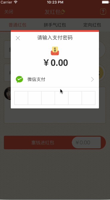 目前在項目中需要實現發紅包的功能,自己就寫了一個密碼輸入框的控件,主要用到了UIKeyInput協議和CoreGraphics框架,效果類似微信支付,感覺還行就把我的思路和制作過程寫下來給大家分享一下。