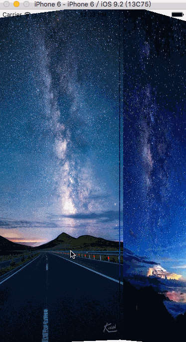 首先在控制器裡添加一個scrollView,再在scrollView上的對應位置上添加要展示的imageView(立方體視圖組),當然也可以放上其它子控制器的view實現更多功能這個隨意不是重點