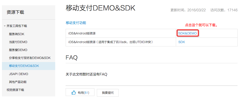 然後就會進入下面的一頁,網址這裡順便給出:https://doc.open.alipay.com/doc2/detail.htm?treeId=54&articleId=104509&docType=1