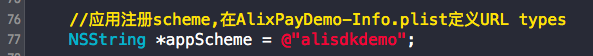 //應用注冊scheme,在AlixPayDemo-Info.plist定義URL types