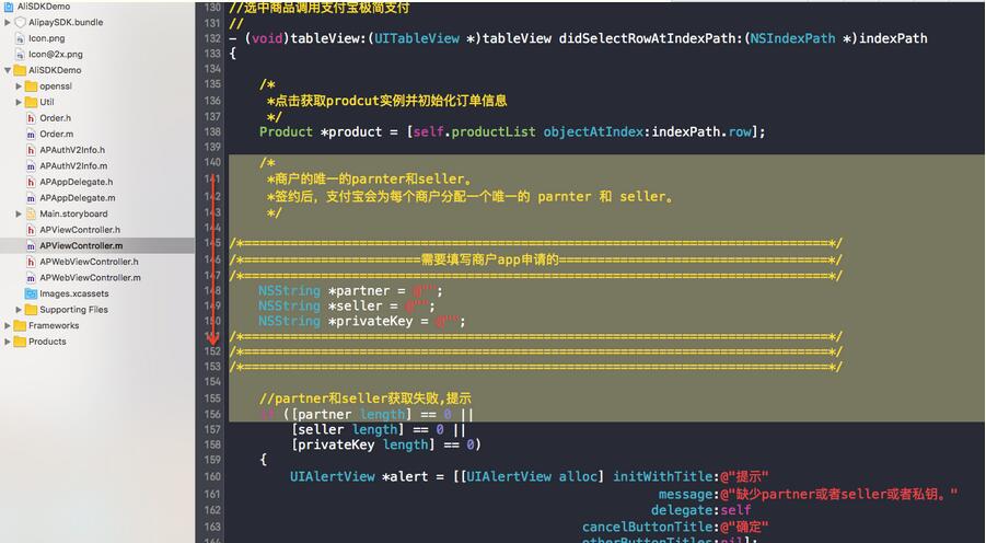 集成過程基本上就是按照上面的四個流程就可以完成集成iOS的支付寶SDK。