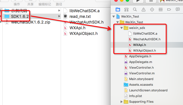 在新建的工程裡,我們把下載的SDK拖進去,下載的SDK文件中有五個文件,那個read_me.txt可以不用留著工程裡,隨你喜歡,但是可以打開閱讀裡面的提示信息: