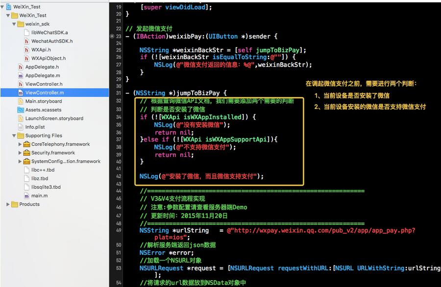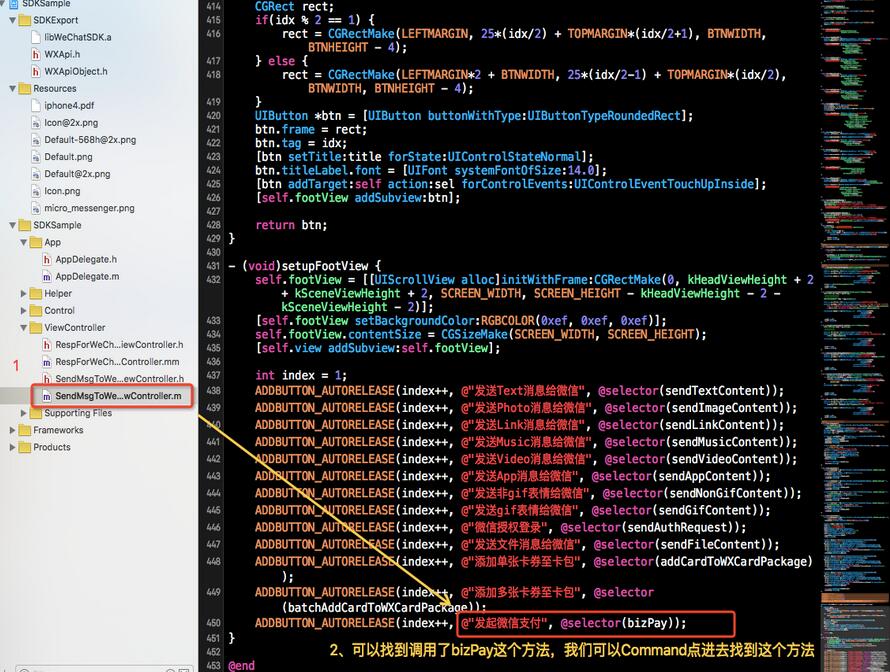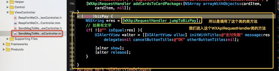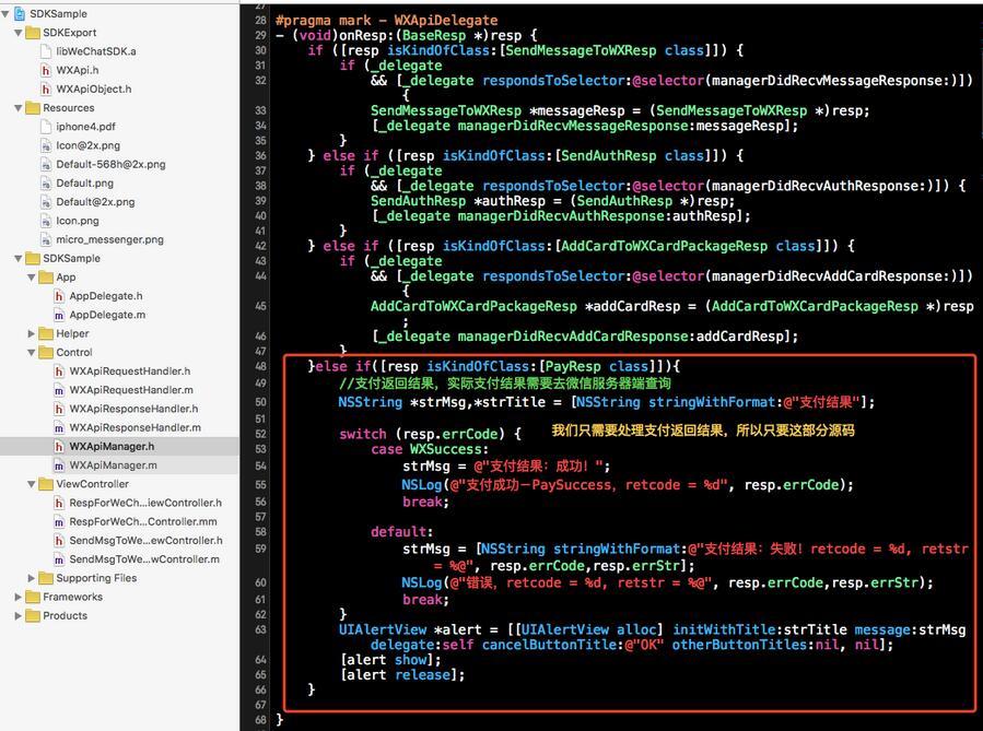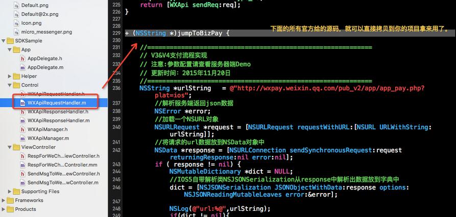 最後我們找到了Demo中完整的可以直接用的這部分發起微信支付的源碼: