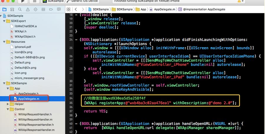 然後我們導入這個頭文件之後,直接根據已經有的APPID進行注冊: