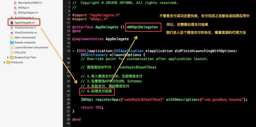 好,其實步驟:1、導入微信支付SDK,注冊微信支付。然後2、設置微信APPID為URL Schemes前面已經做好了。