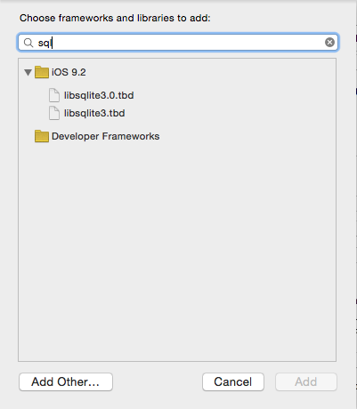 這裡需要導入一個系統自帶的文件libsqlite3.0.tbd