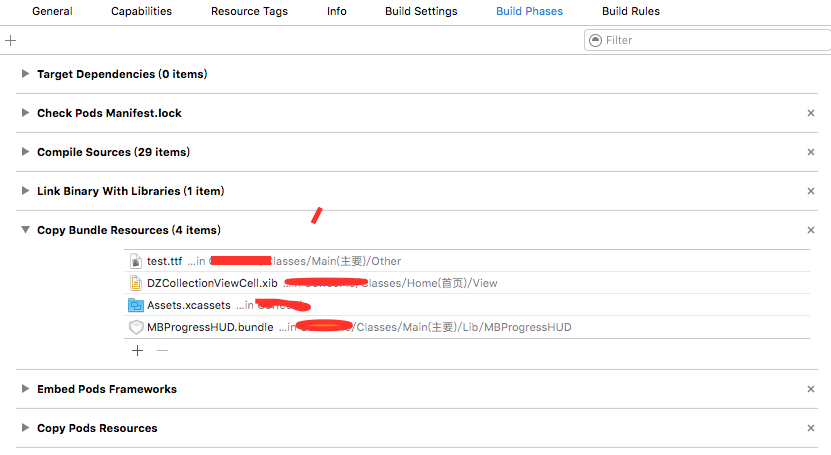 3.在target-->Build Phases-->Copy Bundle Resources中將info.plist中添加的字體添加上。 否則會出現找不到資源的情況