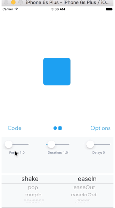 demo跑起來有一個code按鈕,點擊這個按鈕會出現已經設置的動畫屬性及其api,自己可以自定義設置,其對應的api這裡就不贅述了(上面的gif圖片也可以看到)