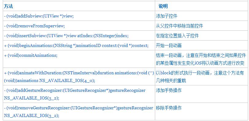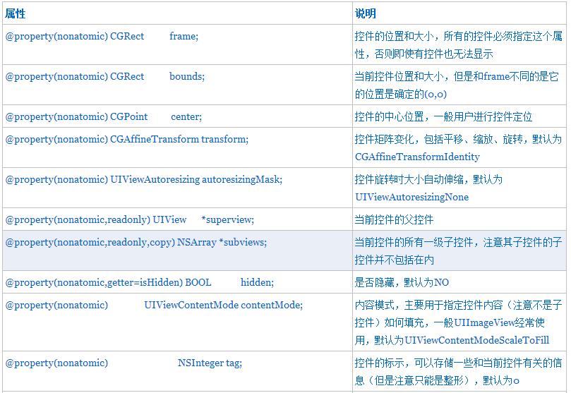 當然UIView的定義文件(.h文件)也是相當長的,我們如果全部截圖也沒有意義。這裡列出常用的屬性和方法。