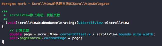 通過ScrollView的代理方法,在ScrollView滾動結束的時候根據contentOffset更新頁碼。