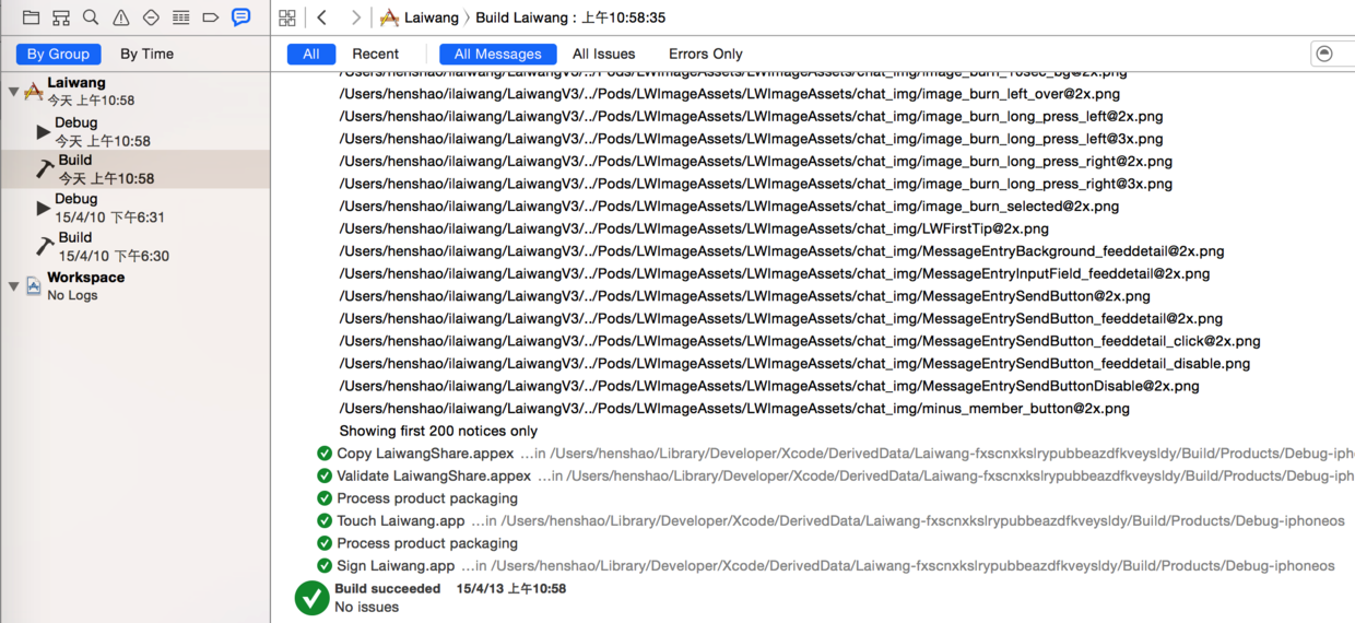 Xcode圖形化操作挺好用的,不過知道一些命令行的操作會更佳。在下面這個地方看到Xcode編譯的詳細過程。