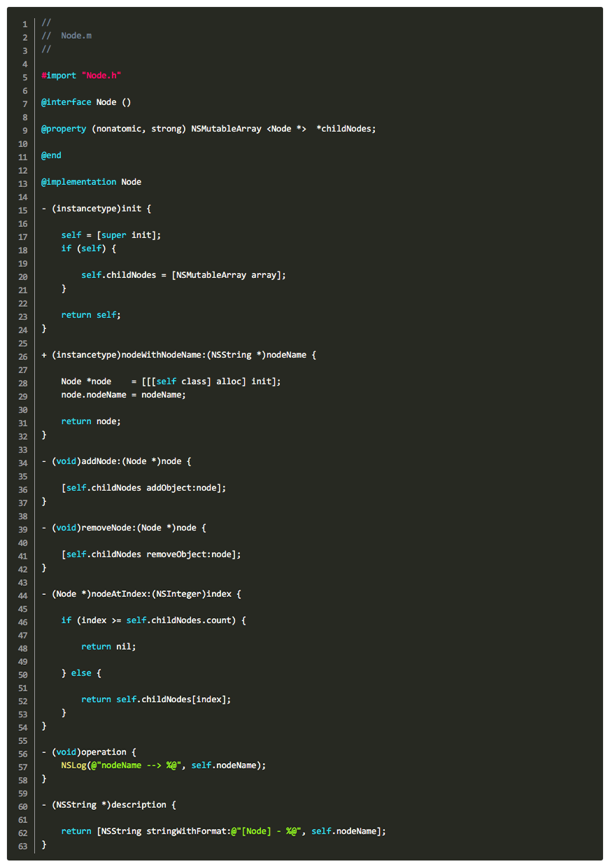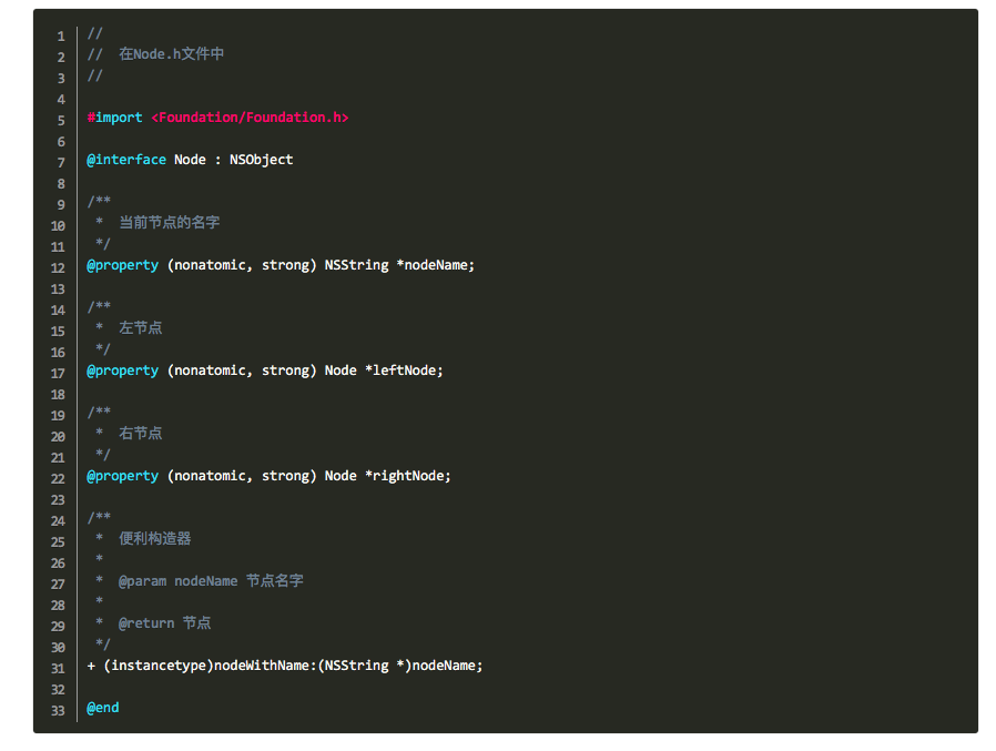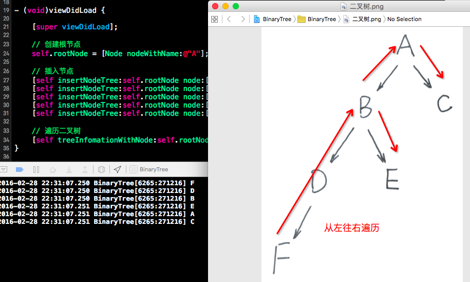 1-2、然後我們在ViewController.m去使用這個Node節點類來實現上面的二叉樹