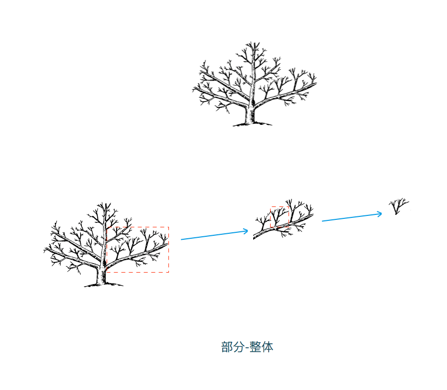 所以從整體和部分的角度來看,外層和內層具有相似的結構,在算法數據結構裡是可以用遞歸算法表示的,但是要注意,