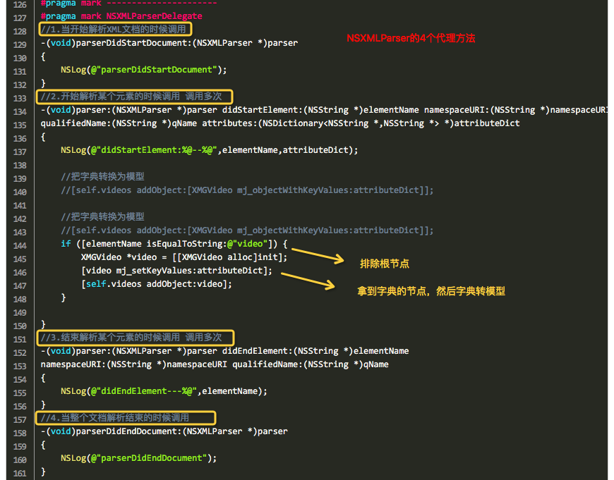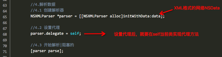 6-1、將蘋果原生的NSXMLParser通過代理方法SAX解析XML的方式封裝在一個普通的NSObject類中。