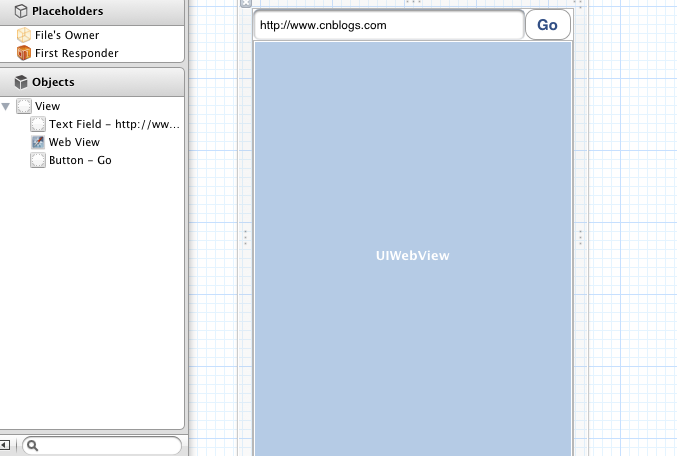 在界面上放置3個控件,一個textfield、一個button、一個uiwebview,布局如下: