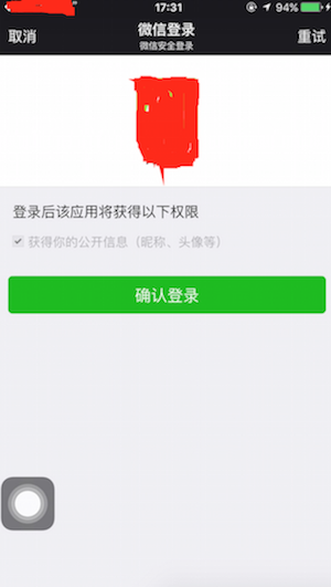 執行完上面那一步後,如果客戶端安裝了微信,那麼就會向微信請求相應的授權,圖如下: