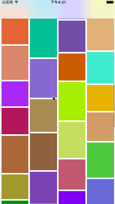 #import "WaterfallCollectionLayout.h" #define colMargin 5 #define colCount 4 #define rolMargin 5 @interface WaterfallCollectionLayout () //數組存放每列的總高度 @property(nonatomic,strong)NSMutableArray* colsHeight; //單元格寬度 @property(nonatomic,assign)CGFloat colWidth; @end