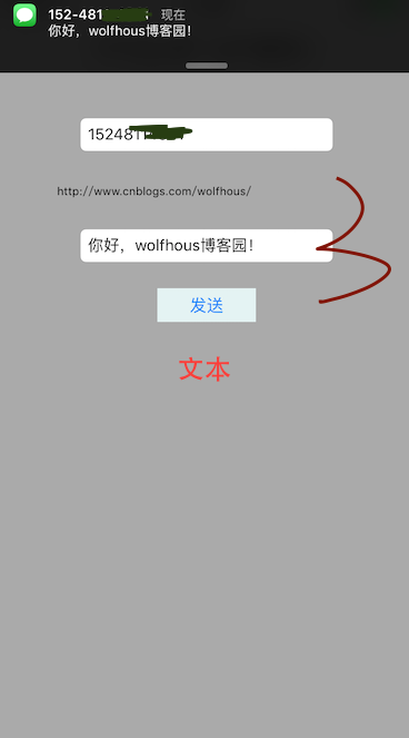 controller.recipients = @[self.phoneTextField.text];//短信接受者為一個NSArray數組