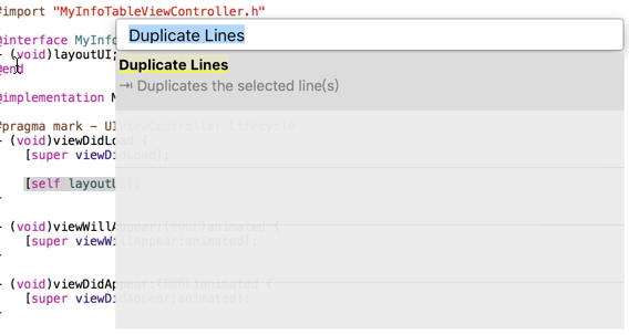 (2)選中內容復用多次:XCDuplicateLineAction
