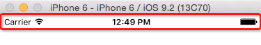 那從整個界面上我們還能發現一個東西,照道理來說,這個界面應該是一個全白色的,那現在它上面多了一些數據。而且我們可以看到Carrier(運營商),有個WiFi標志。中間有一個時間,這個時間是我們電腦的系統時間,最右邊是電量圖標。這個東西呢,我們稱之為狀態欄,他在iOS7.0之前都是一個不透明的效果,是一個單獨存在於屏幕上的東西,但是現在,他是透明的,怎麼說呢?你可以看到他現在是一個白底黑字,你可以嘗試將整個背景設置為黃色、綠色或其他的顏色,就會看到一個很明顯的效果了。