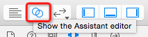 那想要代碼和圖形能夠結合起來,XCode為我們提供了一個開發界面,使我們方便操作。點擊右上角的輔助編輯按鈕