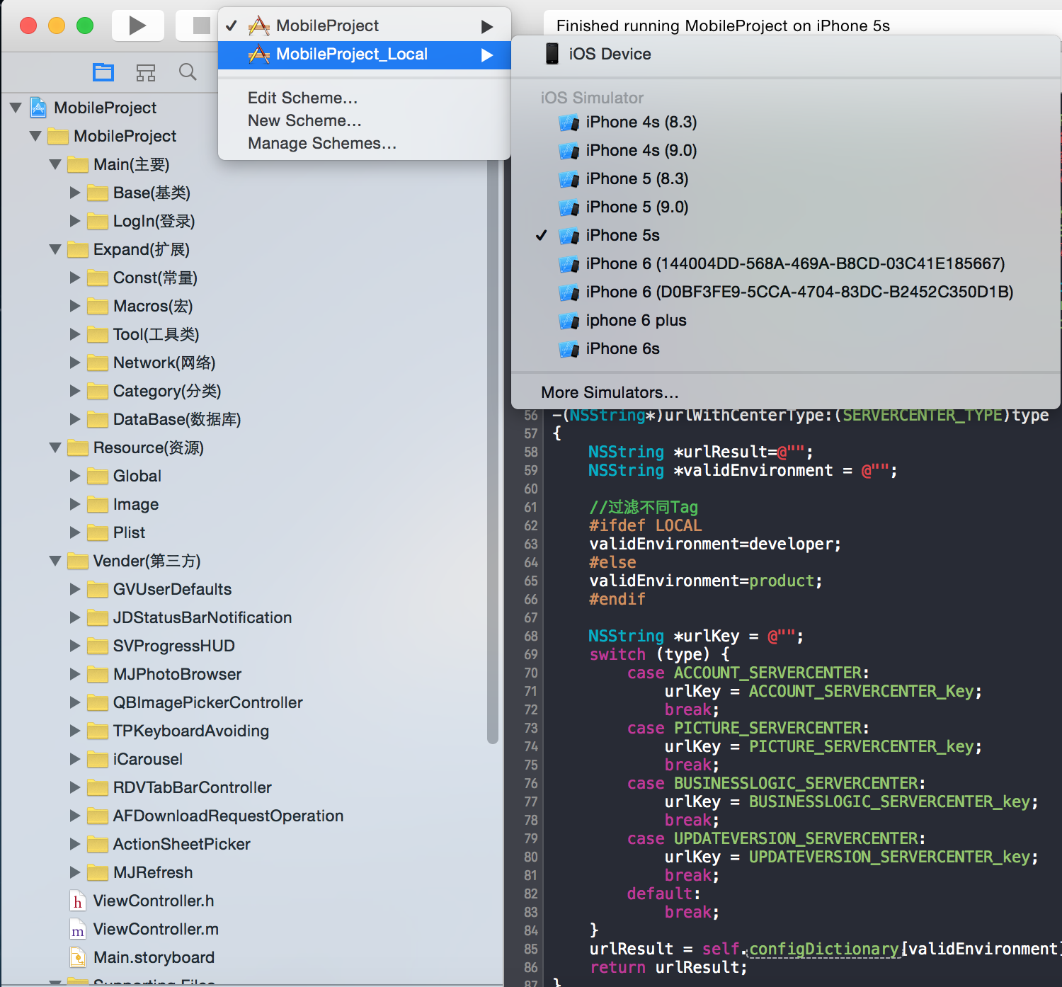 注意:#ifdef LOCAL 就是區分不同的Tag標識,此項目把本地測試的Tag標識定為LOCAL,然後在每個請求中設置其要訪問的類型;
