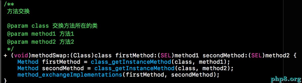 下方就是講類的兩個方法的實現進行交換。如果將MethodA與MethodB的方法實現進行交換的話,調用MethodA時就會執行MethodB的內容,反之亦然。