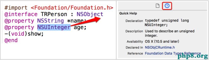 2》通過Quick Help查詢(雙擊選中要查詢的關鍵內容,再點擊”問號“看快速文檔)