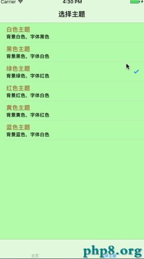 綠色框:綠框中則負責修改主題,其中根據Cell的類型來確定用戶選擇的是哪個主題。