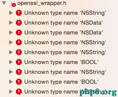 處理方法:只需求在呈現錯誤的文件中導入這些類庫即可,可以在.pch中添加,也可以直接在openssl_wrapper.h中添加