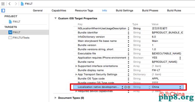 科普一下:以前xcode3生成的項目,修正Target-->Info-->Localization native development region 的值為China就能顯示中文;Xcode4當前修正Target-->Info-->Localization native development region值為China還不夠,同時還需求設置Project-->info-->Localizations Language添加Chinese才行。