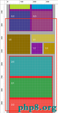 依據DataSource的Delegate,拿到一切的View應該被顯示的地位。這一步,中心是拿到的地位是確定的。依據Demo,我們察看從 0/1 - 2/3 之間這些View,這個時分LazyScrollView拿到的Rect如下: